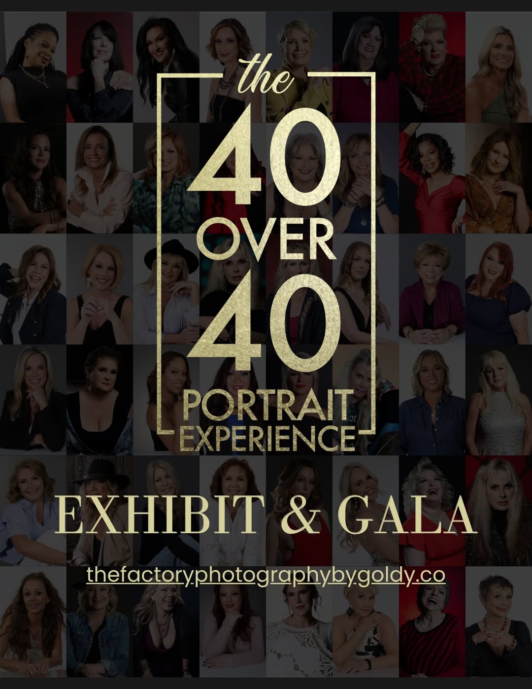 Created through The Factory Photography by Goldy Locks, the 40 Over 40 Portrait Experience has grown from a local project into an international movement designed to redefine how women over 40 see themselves. Participants travel from across the United States and abroad, including Europe, to take part in a full-day portrait session that combines professional styling, wardrobe access, and guided photography in a high-energy, supportive environment.